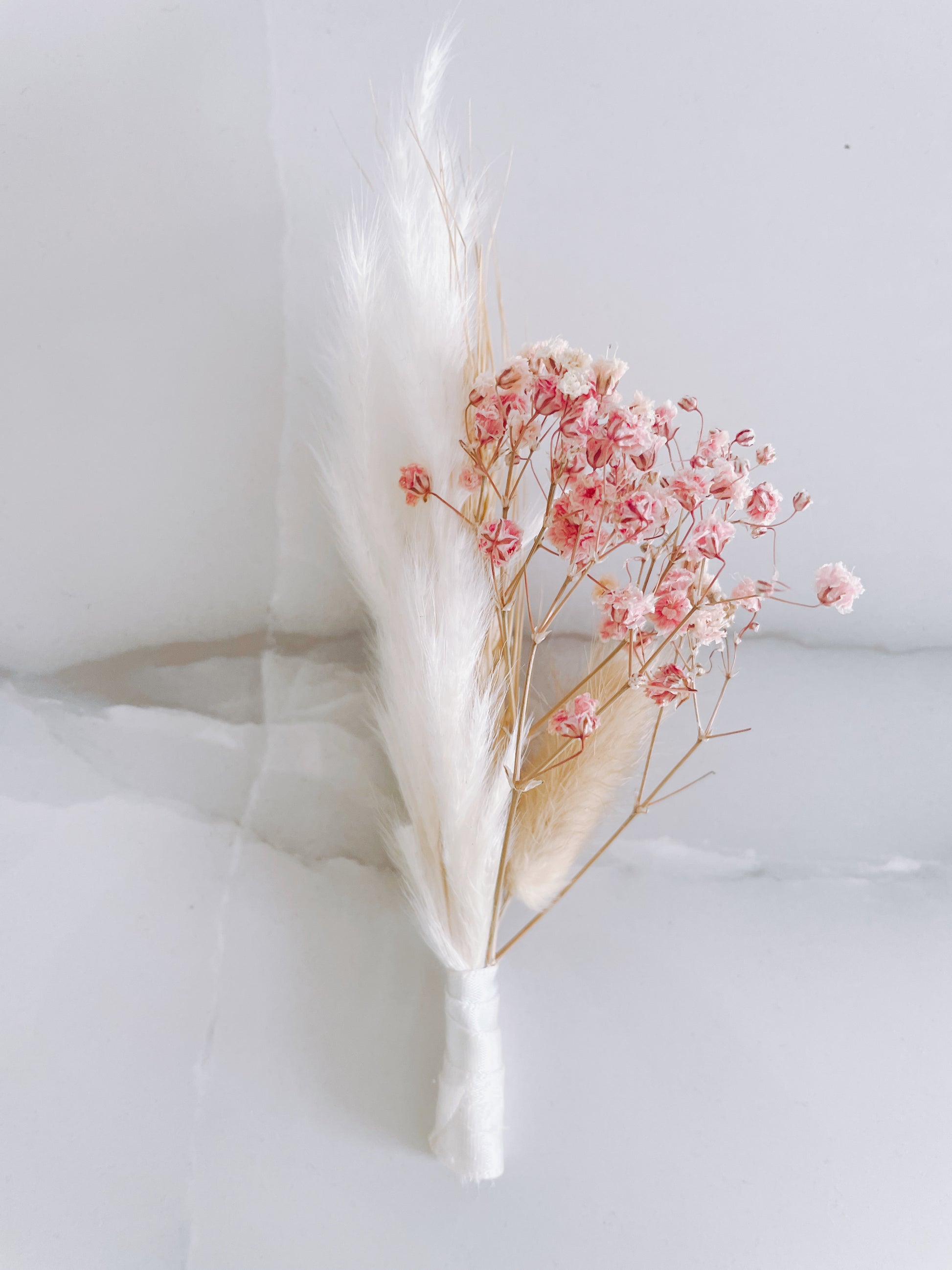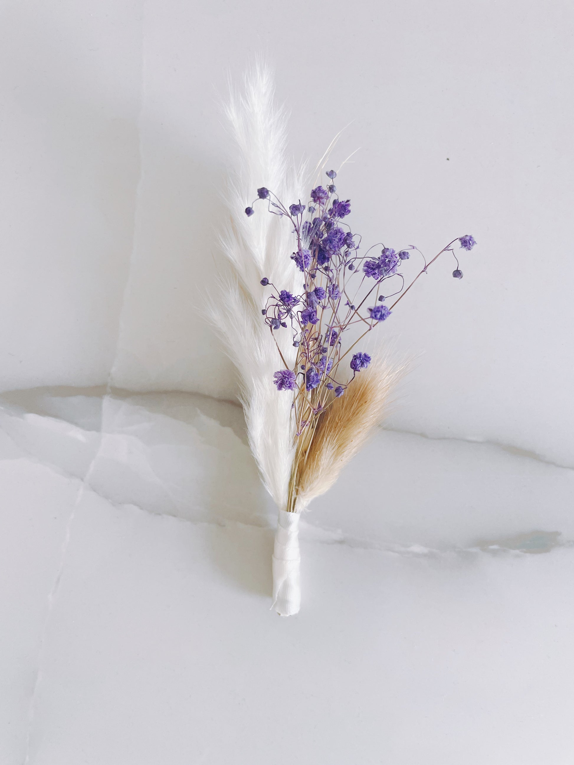 Pampas Grass+Babies Breathe+Bunny Tails+Pink+Blue+Cream+Purple+Leaf Boutonniere, Spring Wedding, Summer Wedding Boutonniere, Wedding Boutonniere, Groomsmen Boho Boutonniere